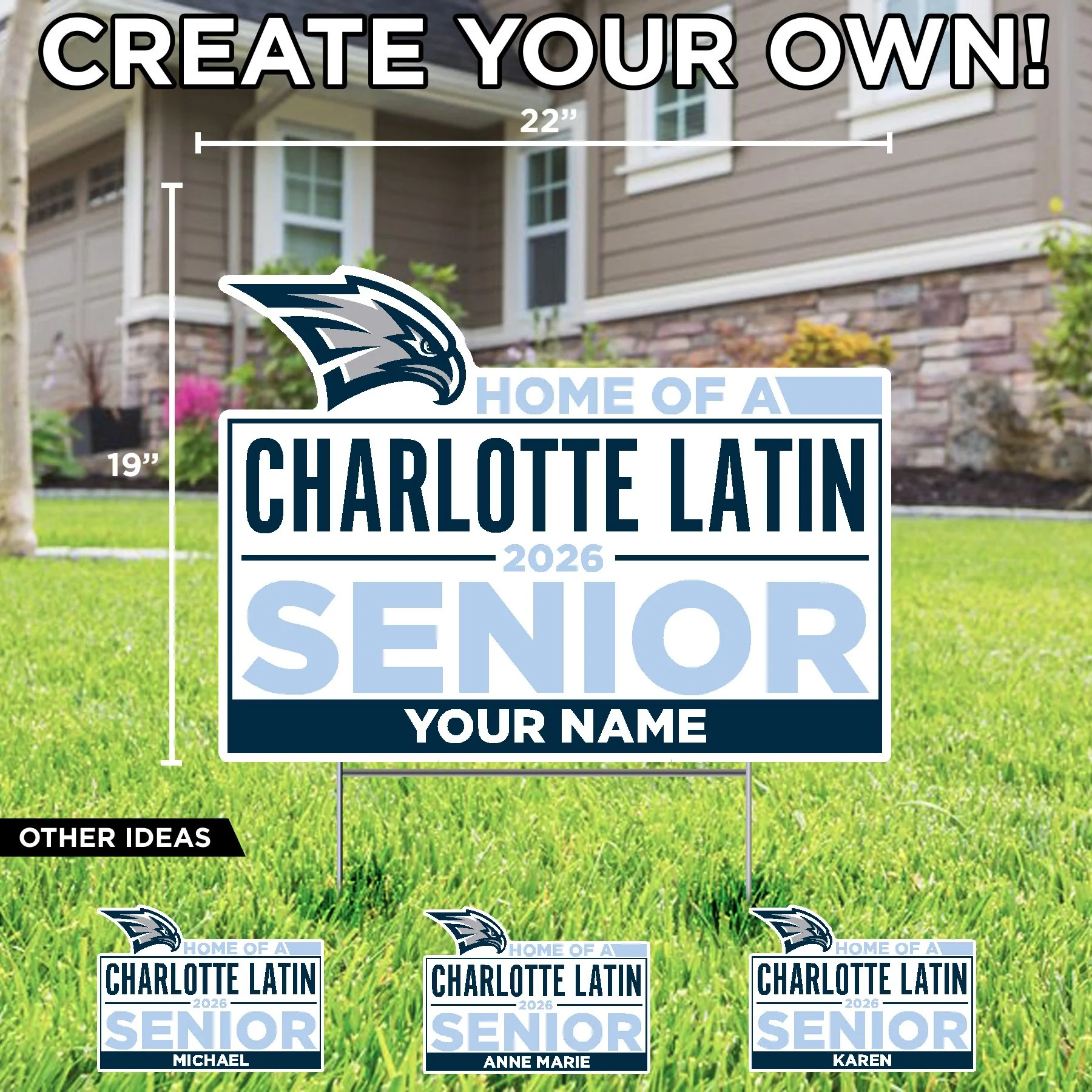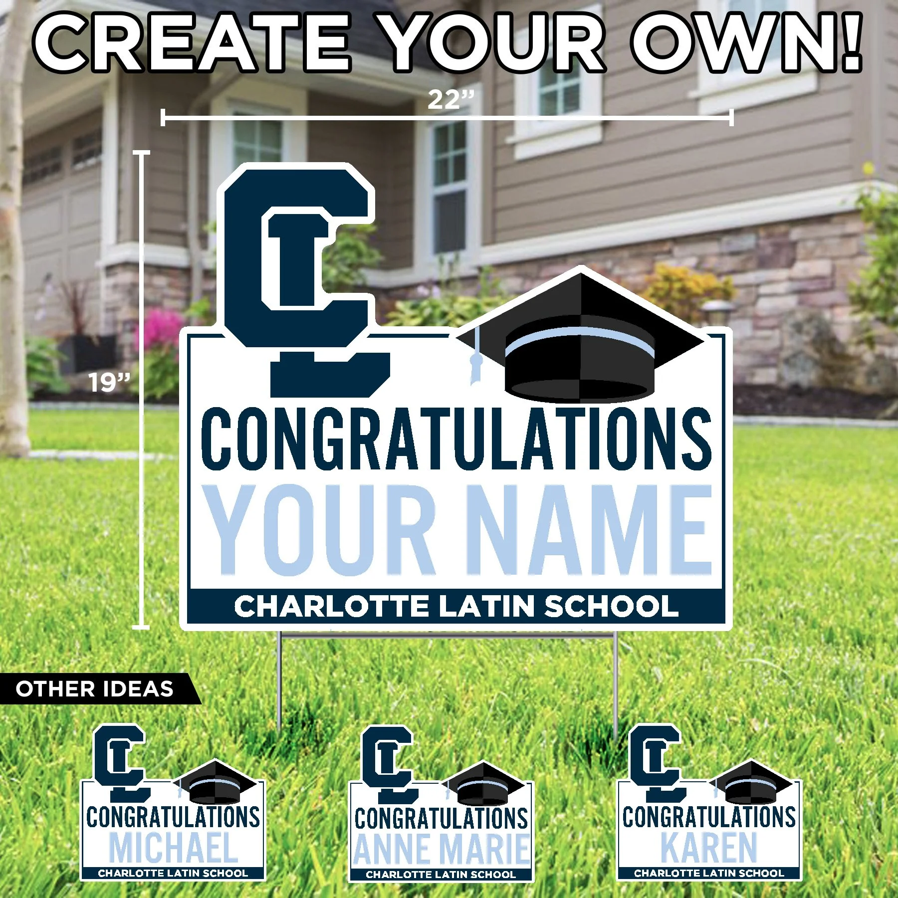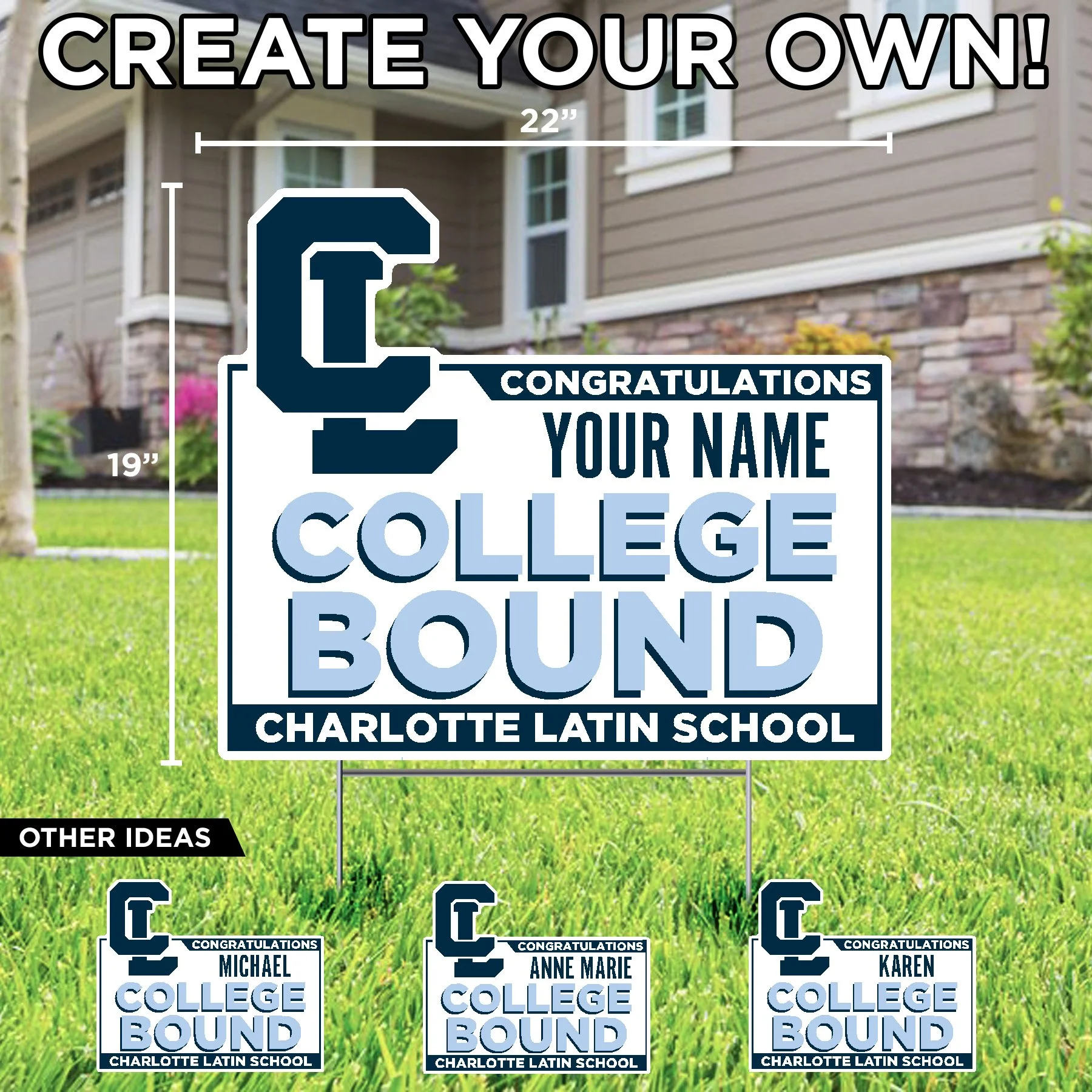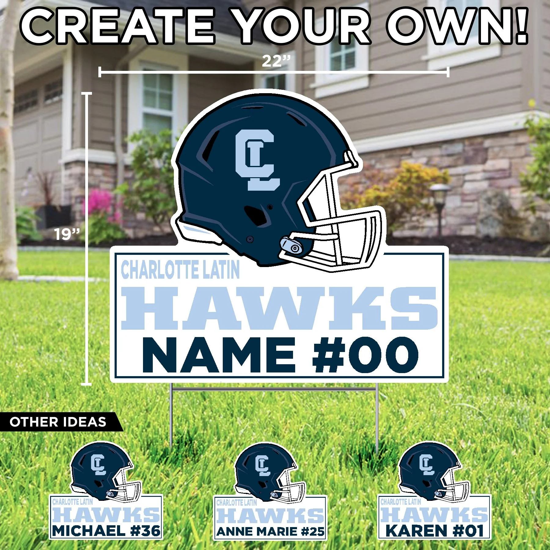 Charlotte Latin School LETS GO CL LOGO LAWN DISPLAY $84.99 2026 GRAD CL LOGO LAWN DISPLAY $84.99 CHARLOTTE LATIN FOOTBALL HAWKS (NAME NUMBER) CUSTOM LAWN SIGN $34.99 CL LOGO FOOTBALL HELMET LAWN SIGN $29.99 CONGRATS GRAD (NAME) CHARLOTTE LATIN CUSTOM LAWN SIGN $34.99 CONGRATULATIONS (NAME) COLLEGE BOUND CUSTOM LAWN SIGN $34.99 HOME OF A CHARLOTTE LATIN 2026 SENIOR (NAME) CUSTOM LAWN SIGN $34.99 HOME OF A CHARLOTTE LATIN 2026 SENIOR LAWN SIGN $29.99 CONGRATULATIONS (NAME) CHARLOTTE LATIN CUSTOM LAWN SIGN $34.99 CONGRATULATIONS GRADUATE CHARLOTTE LATIN LAWN SIGN $29.99 HOME OF A CHARLOTTE LATIN HAWK LAWN SIGN $29.99 CHARLOTTE LATIN CL LOGO LAWN SIGN $29.99 CHARLOTTE LATIN HAWK LOGO LAWN SIGN $29.99