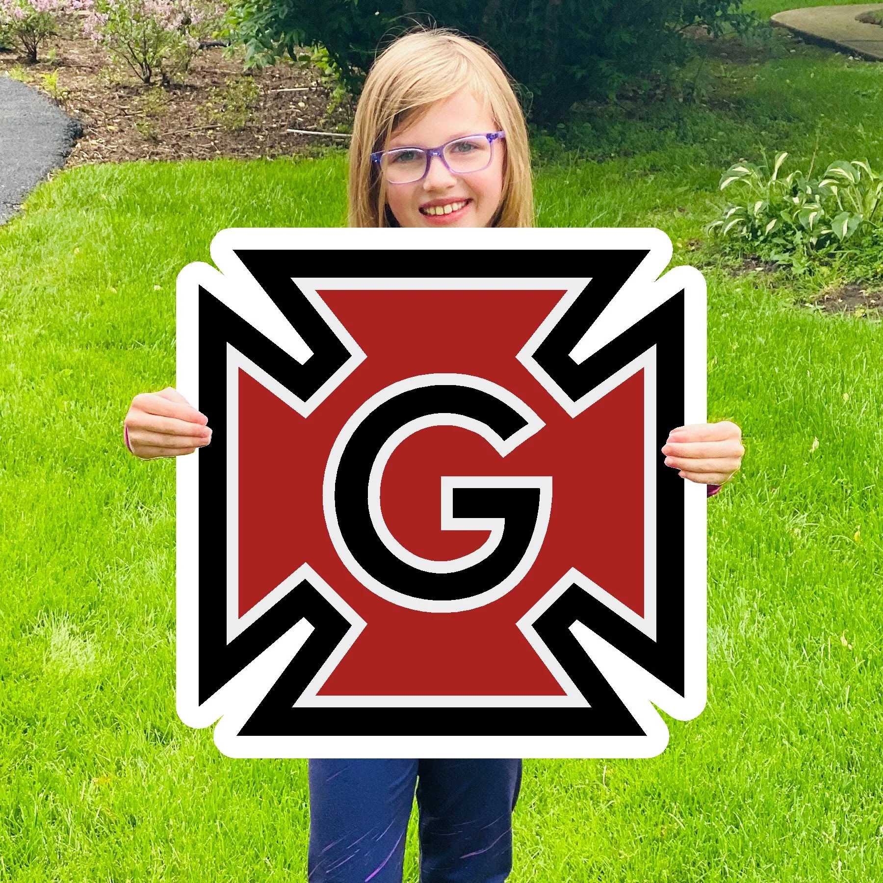 Grinnell College Pioneer Bookshop › Grinnell College G Cross Lawn Sign Image 1 of 5 Image 2 of 5 Image 3 of 5 Image 4 of 5 Image 5 of 5 Grinnell College G Cross Lawn Sign $29.99 Officially Licensed ProductMade of weatherproof fluted plastic to withstand the elementsIncludes Metal H stakes for easy installation Add To Cart Added! Officially Licensed ProductMade of weatherproof fluted plastic to withstand the elementsIncludes Metal H stakes for easy installation