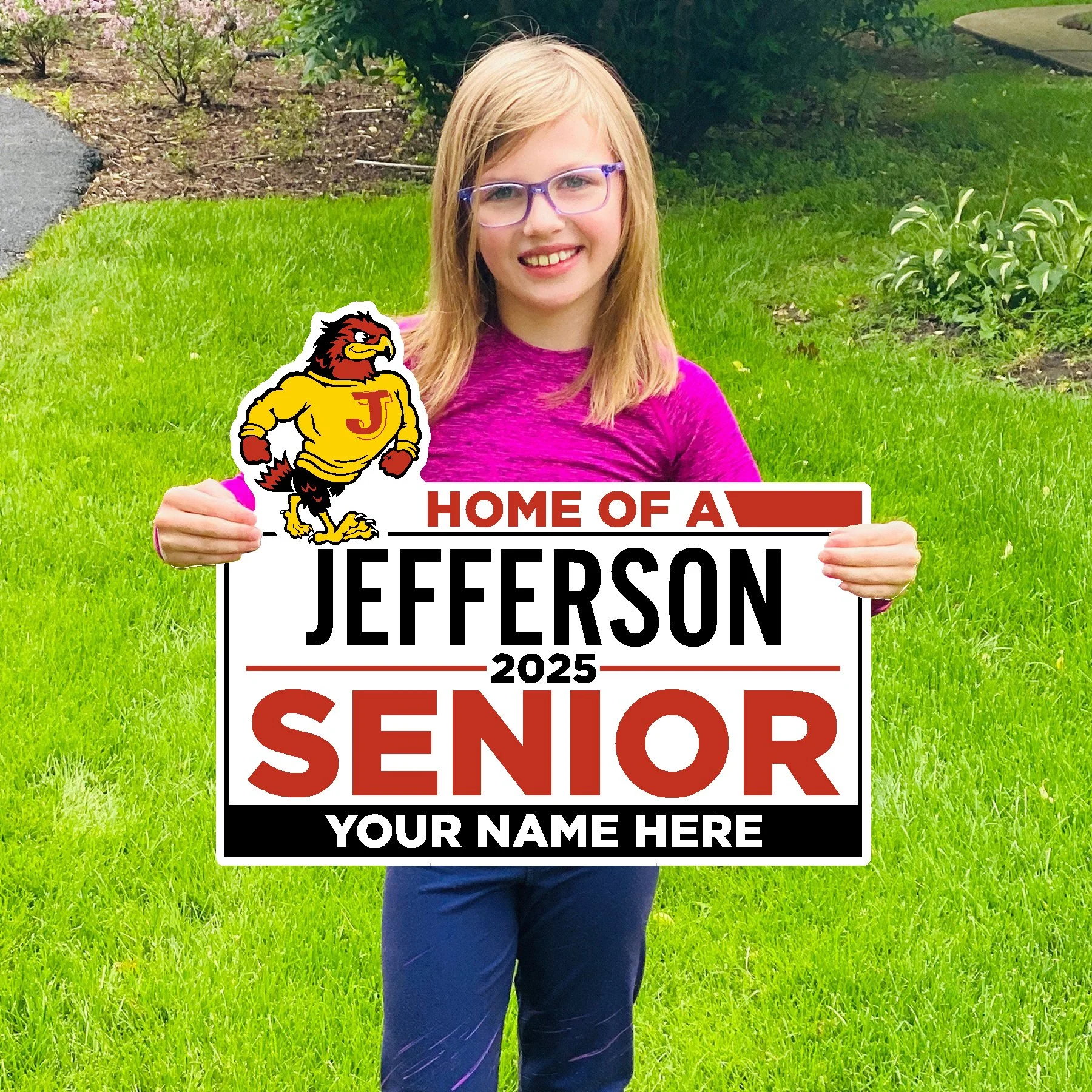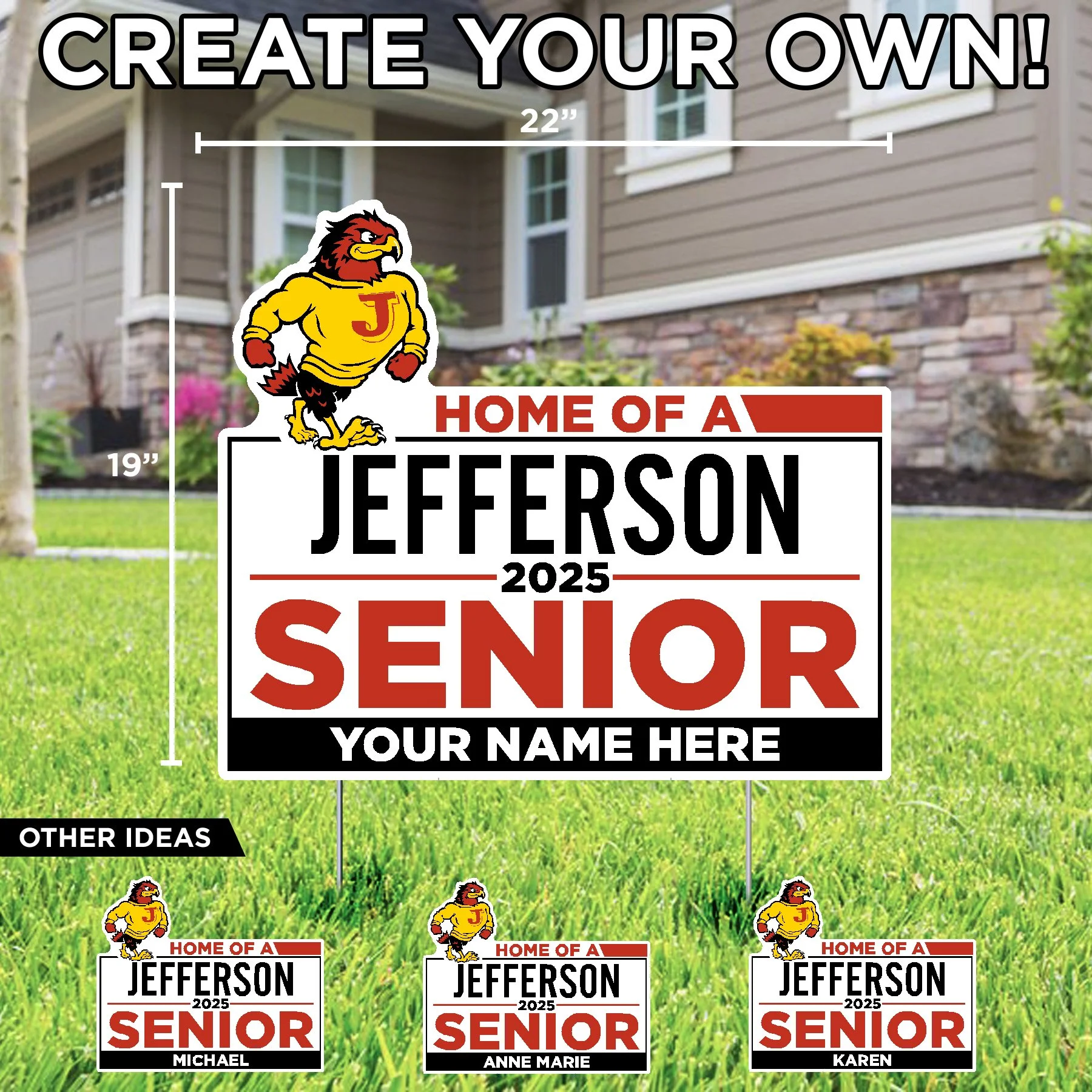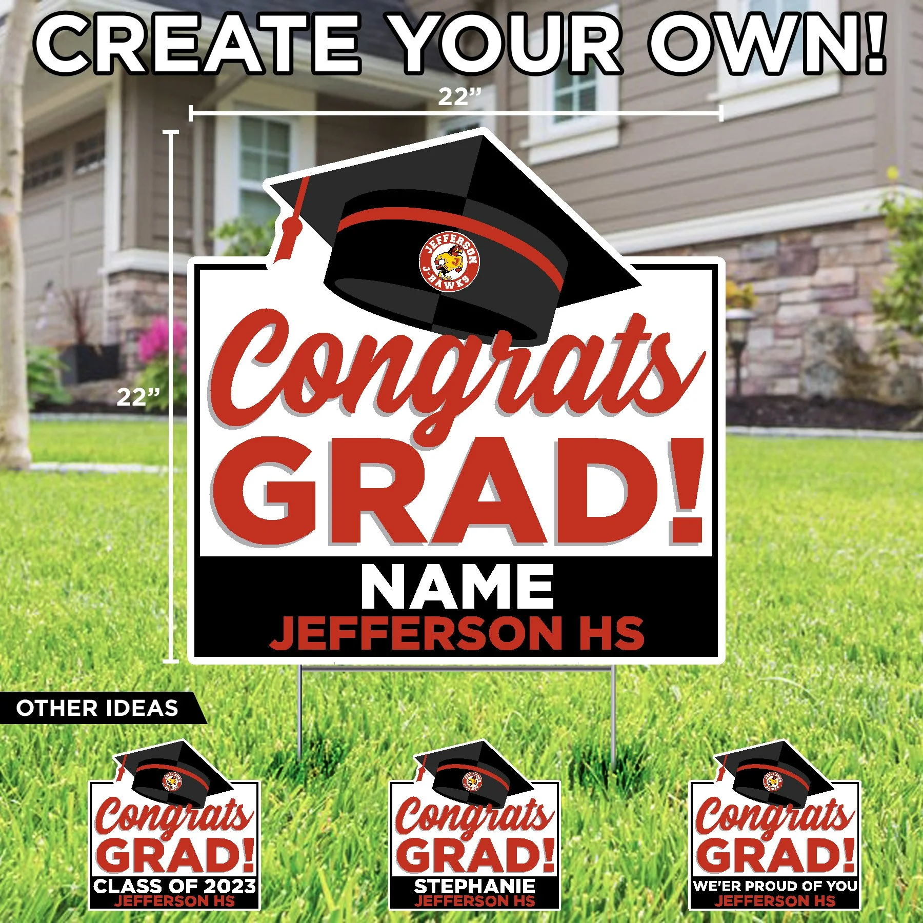 Jefferson High School Custom Congrats Class of (YEAR) Grad Jefferson High School Lawn Sign with Picture and Name $23.50 (Custom) Congrats Grad Jefferson High School with custom name $23.50 (Custom) Congratulations Jefferson High School with custom name $23.50 (Custom) Home of a Jefferson Senior with custom name $23.50 (Custom) Home of a Jefferson Athlete with custom name and sport $23.50 (Custom) Jefferson J-Hawks with name and number $23.50 (Custom) College Bound Jefferson High School $23.50 Jefferson High School Congratulations Graduate $20.50 Jefferson High School Congrats Grad College Bound $20.50 Home of a Jefferson J-Hawk Lawn Sign $20.50 Home of a Jefferson (YEAR) Senior Lawn Sign $20.50 Jefferson High School Football Helmet Lawn Sign $20.50 Jefferson High School Mascot Circle Design Lawn Sign $20.50 Jefferson High School Mascot Lawn Sign $20.50 Jefferson High School (YEAR) Grad Lawn Display $68.66 Jefferson High School Let's Go Lawn Display $57.00