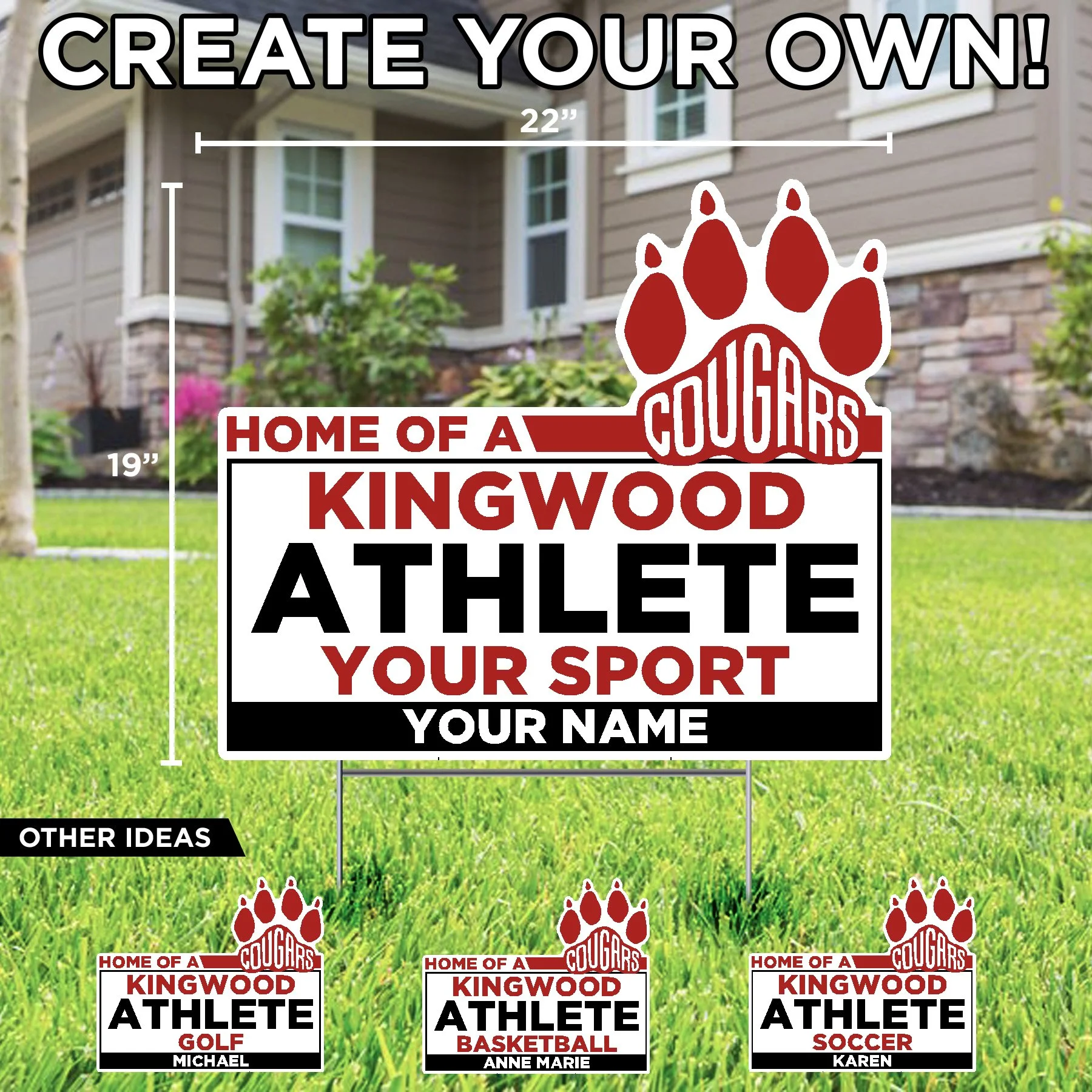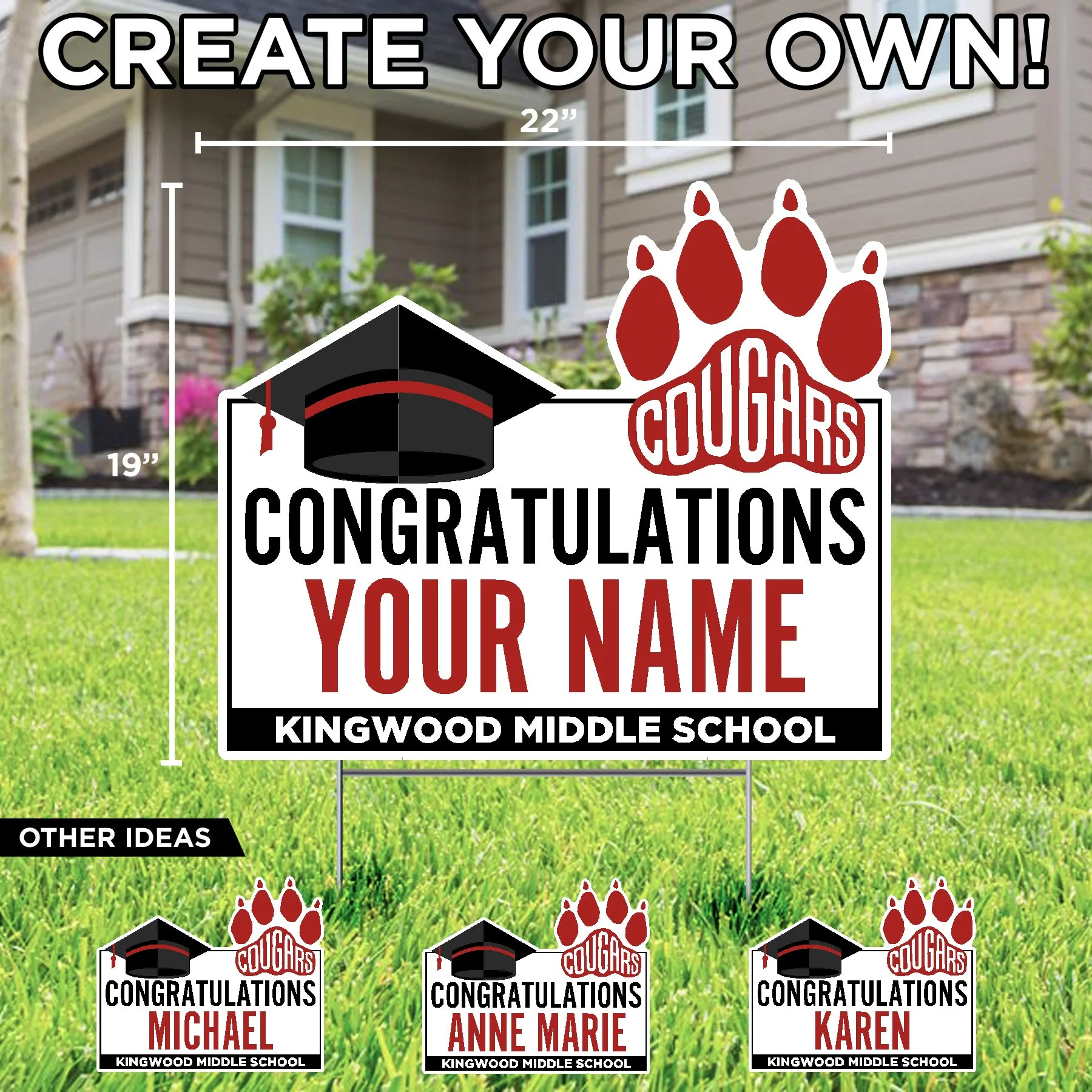 KINGWOOD MIDDLE SCHOOL HOME OF A KINGWOOD ATHLETE (SPORT)(NAME) CUSTOM LAWN SIGN $34.99 HOME OF A KINGWOOD COUGAR LAWN SIGN $29.99 CONGRATULATIONS (NAME) KINGWOOD MIDDLE SCHOOL CUSTOM LAWN SIGN $34.99 CONGRATULATIONS GRADUATE KINGWOOD MIDDLE SCHOOL LAWN SIGN $29.99 2026 GRAD KINGWOOD MIDDLE SCHOOL LAWN DISPLAY $84.99 LET'S GO KINGWOOD MIDDLE SCHOOL LAWN DISPLAY $84.99 KINGWOOD MIDDLE SCHOOL CONGRATS! LAWN DISPLAY $84.99 KINGWOOD MIDDLE SCHOOL COUGARS LAWN SIGN $29.99 KINGWOOD MIDDLE SCHOOL COUGAR LAWN SIGN $29.99