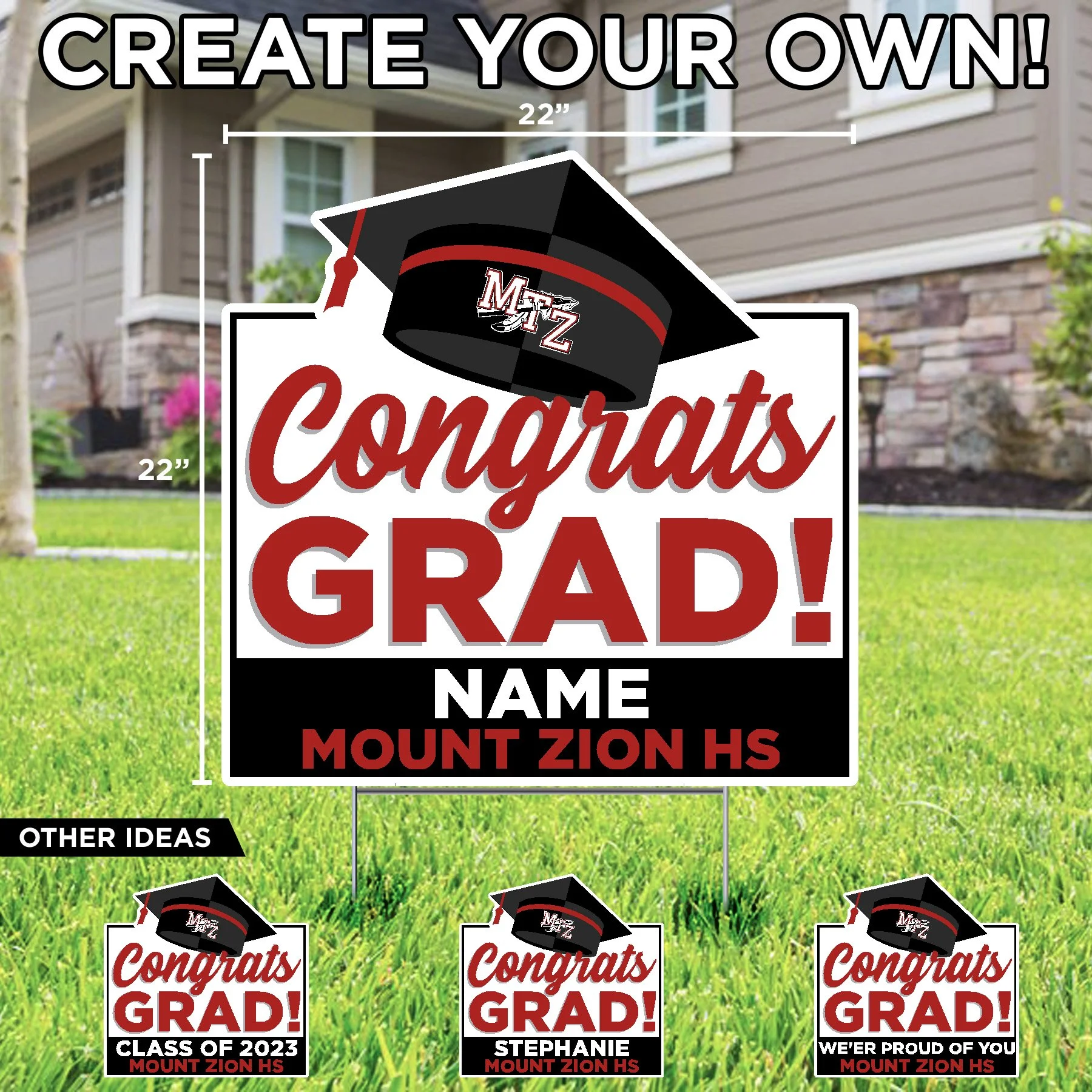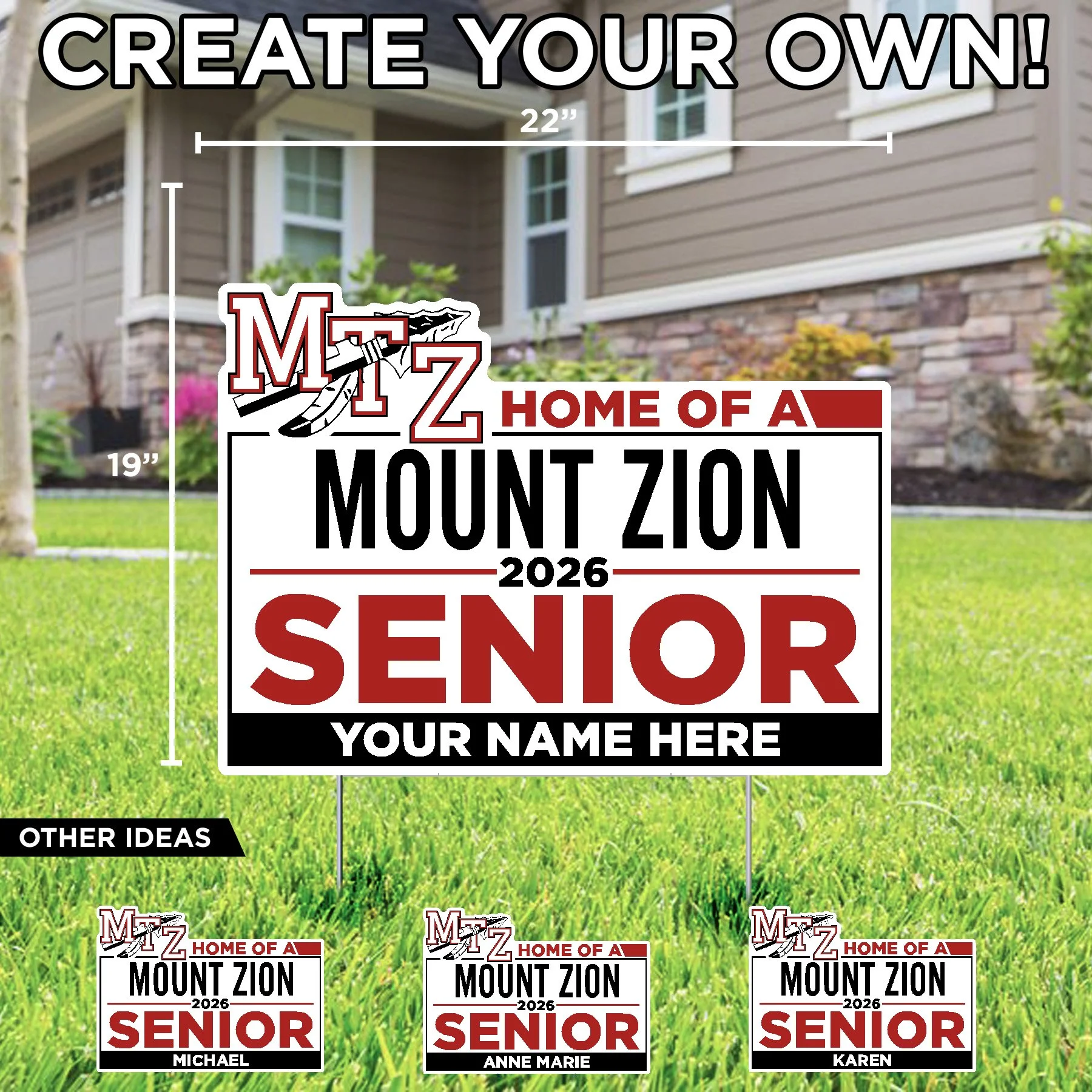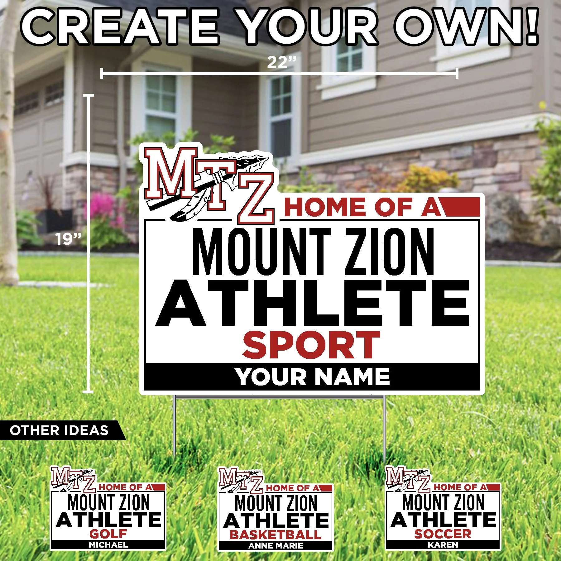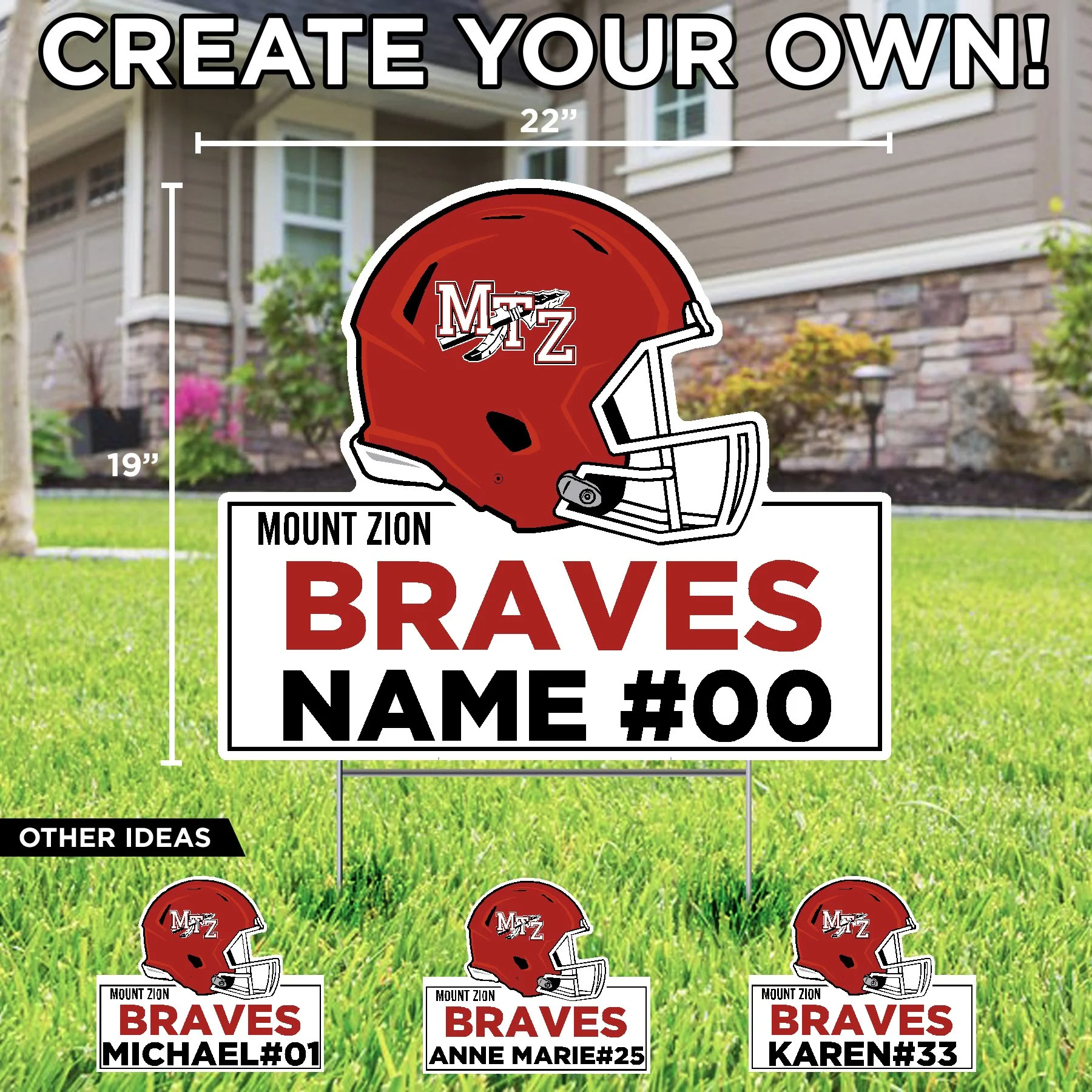 Mount Zion High School Mount Zion (CUSTOM TEXT) (Name) $23.50 Basketball Mount Zion (Name) $23.50 Wrestling Mount Zion (Name) $23.50 Mount Zion Poms with custom name $23.50 Mount Zion Athlete with custom sport and name $23.50 MTZ JFL Cheer with custom text $23.50 Congrats Grad! with custom name $23.50 Mount Zion College Bound with Custom Name $23.50 Mount Zion Football with Custom Text $23.50 Mount Zion Soccer with Custom Text $23.50 Mount Zion Volleyball with Custom Text $23.50 Congratulations Graduate Mount Zion High School $20.50 Mount Zion Congratulations Graduate (Custom Name) $23.50 Home of Mount Zion 2026 Senior (Custom Name) $23.50 Mount Zion Football Helmet $20.50 Home of a Mount Zion 2026 Senior $20.50 Home of a Mount Zion Braves $20.50 Mount Zion MTZ Lawn Sign $20.50 2026 MTZ Grad Lawn Display $68.66 Let's Go MTZ Lawn Display $57.00
