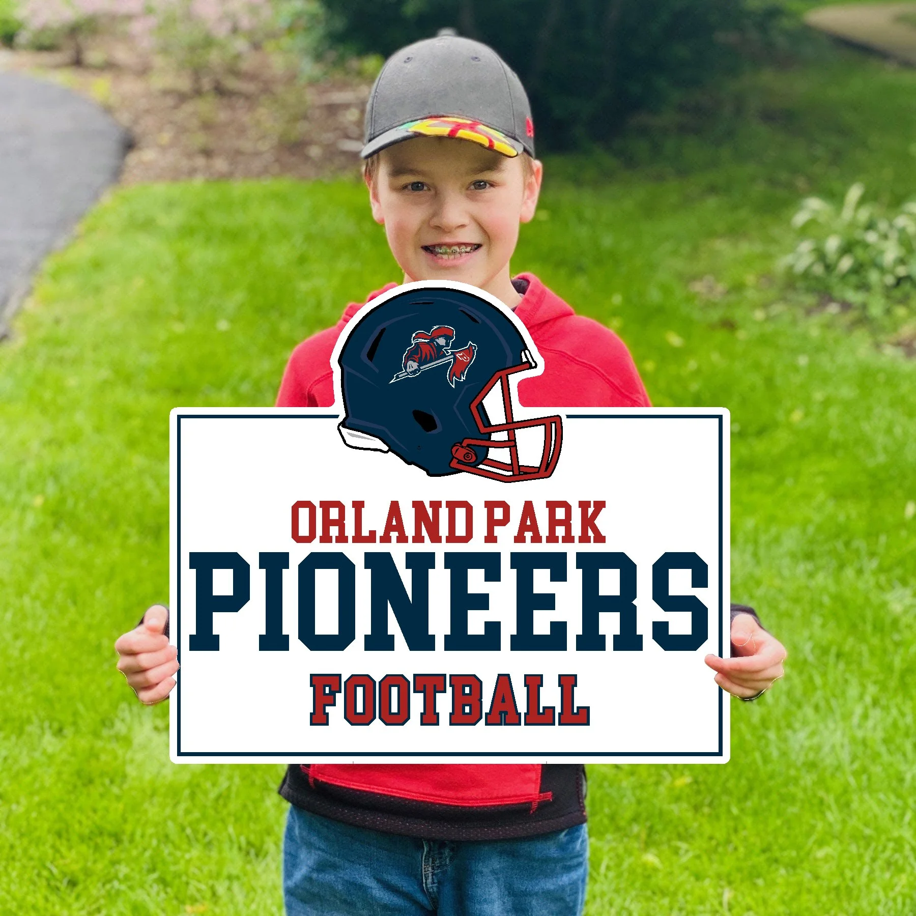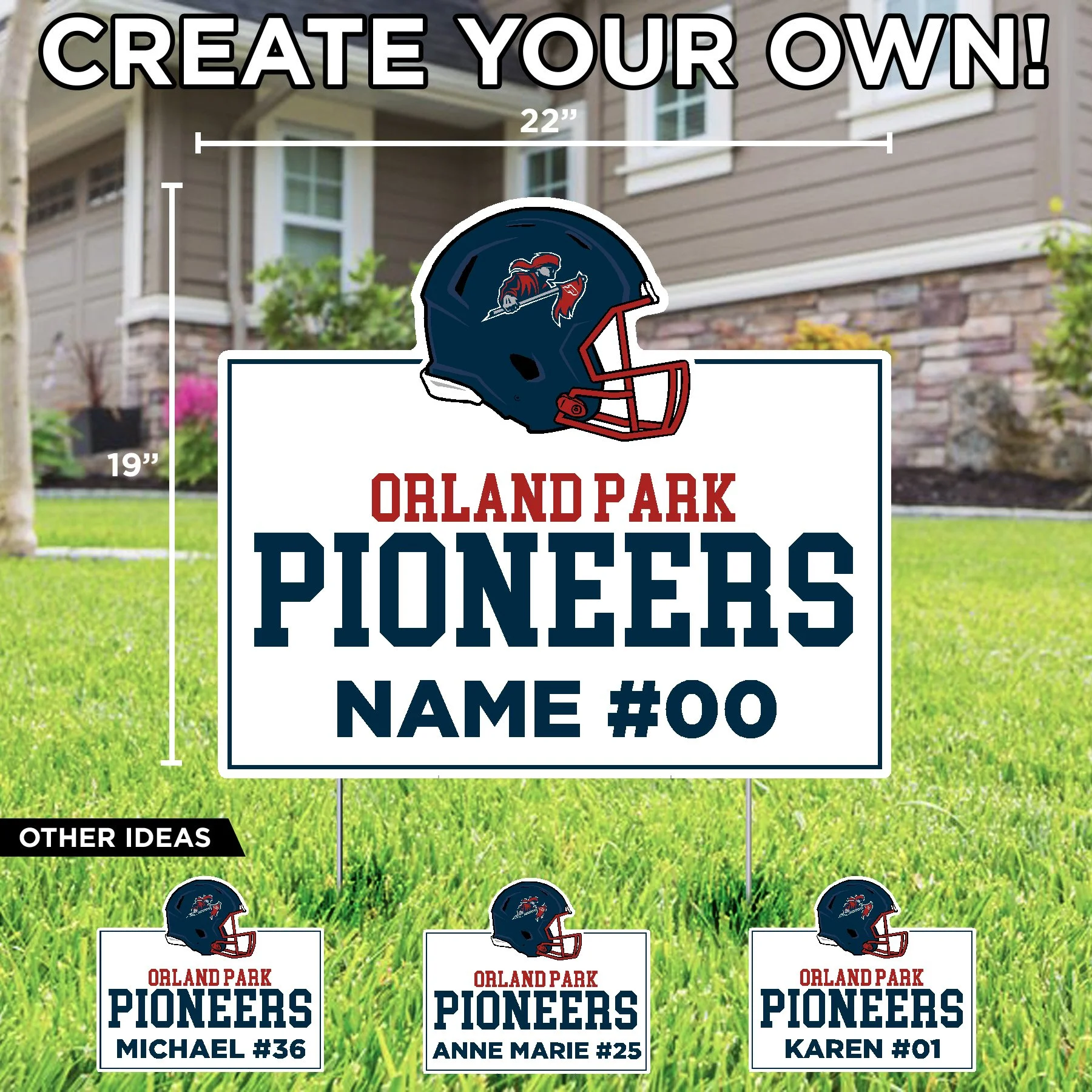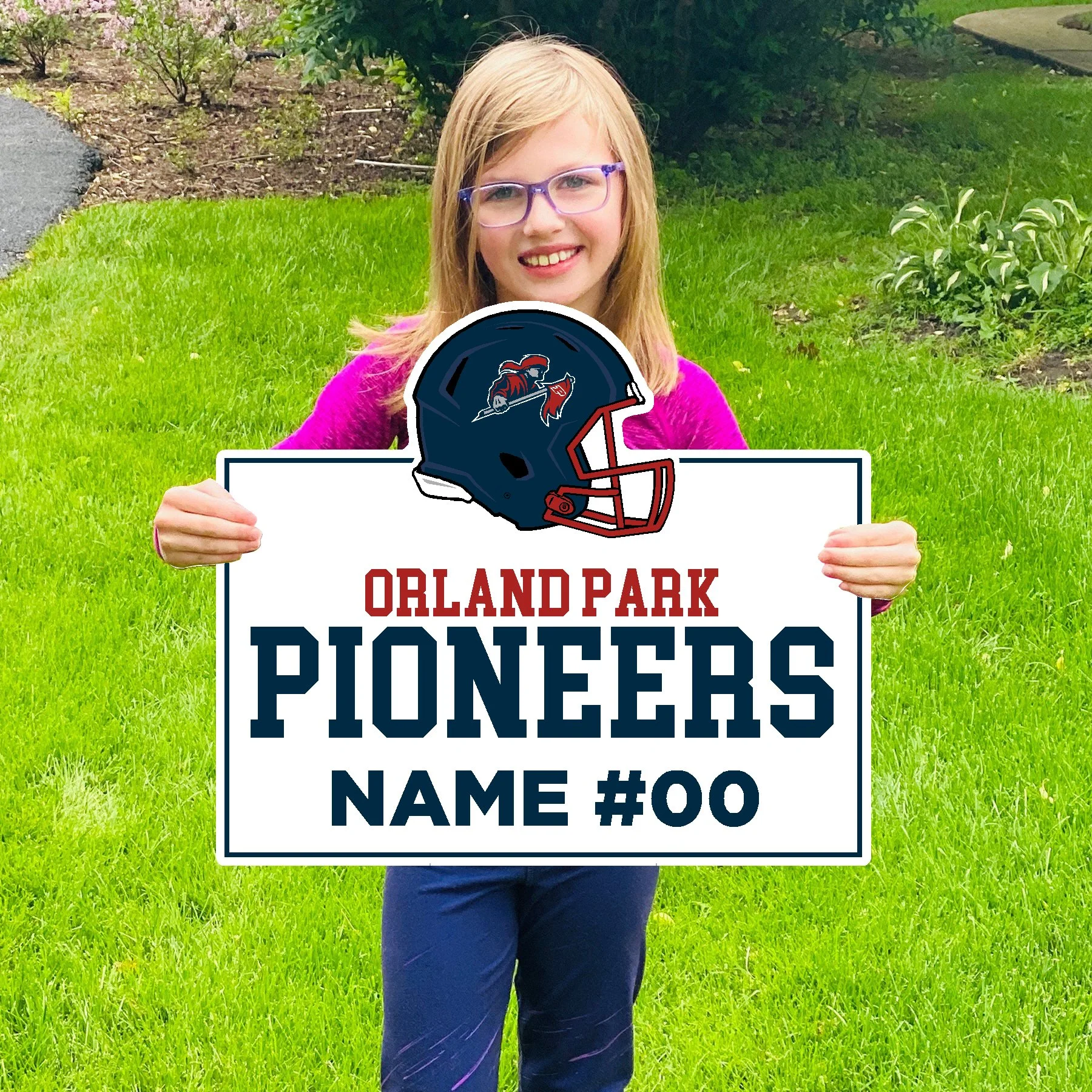 Orland Park Pioneers ORLAND PARK FOOTBALL HELMET LAWN SIGN $23.50 STRONG TOGETHER ORLAND PIONEER SMALL LAWN SIGN $17.50 STRONG TOGETHER ORLAND PIONEER LAWN SIGN $23.50 PROUD GRANDPARENT OF AN PIONEER LAWN SIGN $23.50 ORLAND PARK PIONEERS FOOTBALL HELMET LAWN SIGN $23.50 ORLAND PARK PIONEERS FOOTBALL (name number) LAWN SIGN $26.50 PIONEERS CHEER LETS GO LAWN SIGN $23.50 PIONEERS CHEER (your text) LAWN SIGN $26.50
