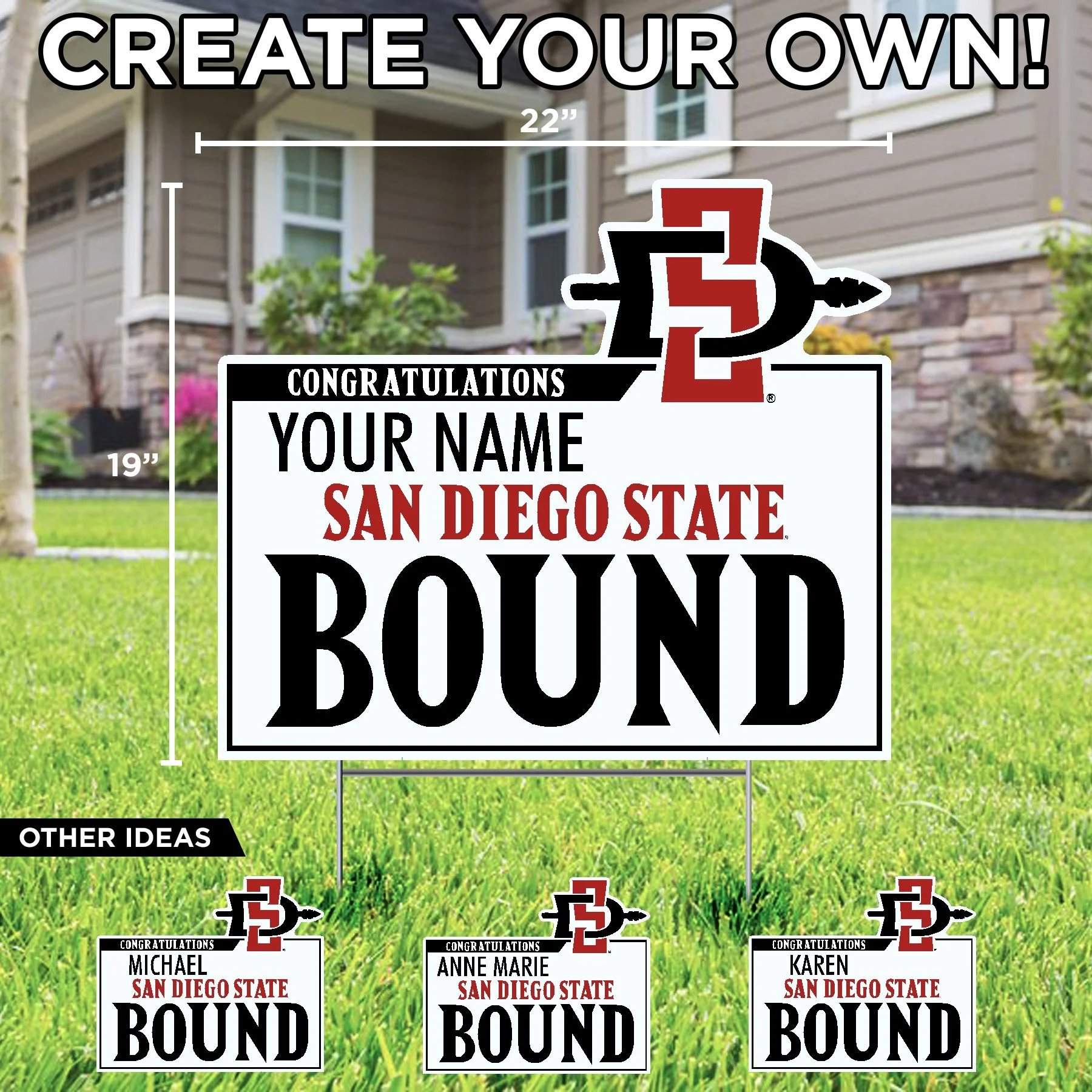 San Diego State University › Customized Congratulations (with cap) - San Diego State University Image 1 of 5 Image 2 of 5 Image 3 of 5 Image 4 of 5 Image 5 of 5 Customized Congratulations (with cap) - San Diego State University $34.99 Quantity: Add To Cart Added! You Might Also Like Customized Happy Birthday - San Diego State University $34.99 Customized Congratulations (with cap and logo) - San Diego State University $34.99 Customized San Diego State Bound Lawn Sign $34.99