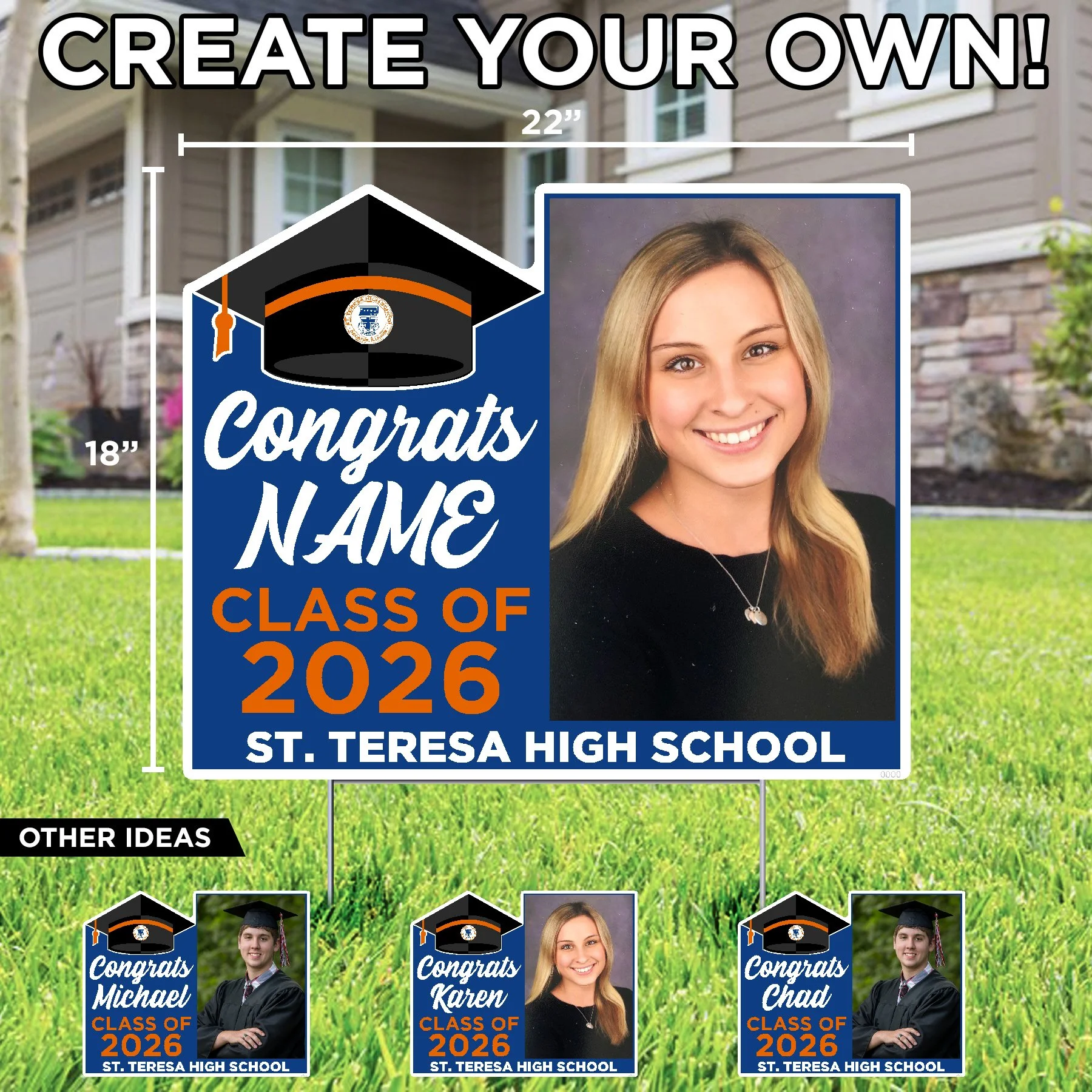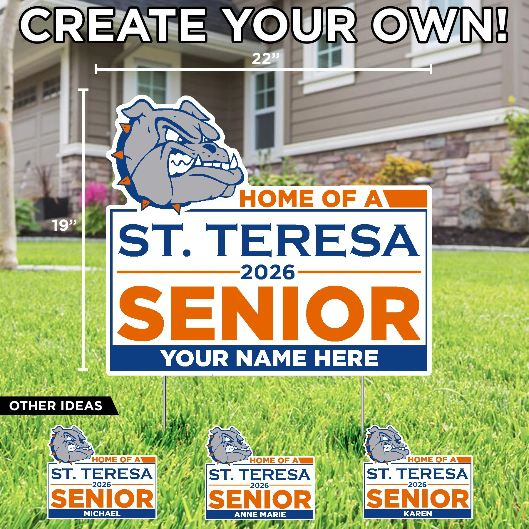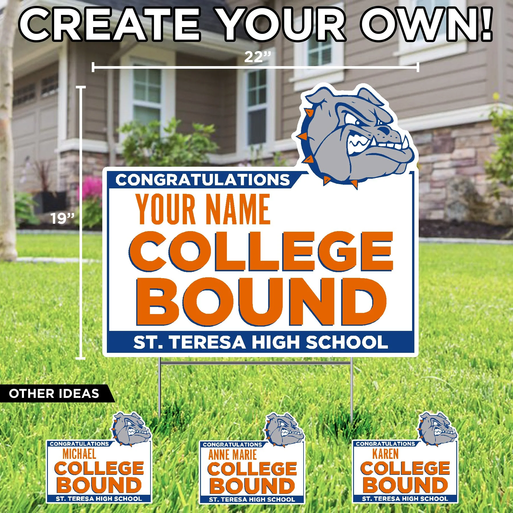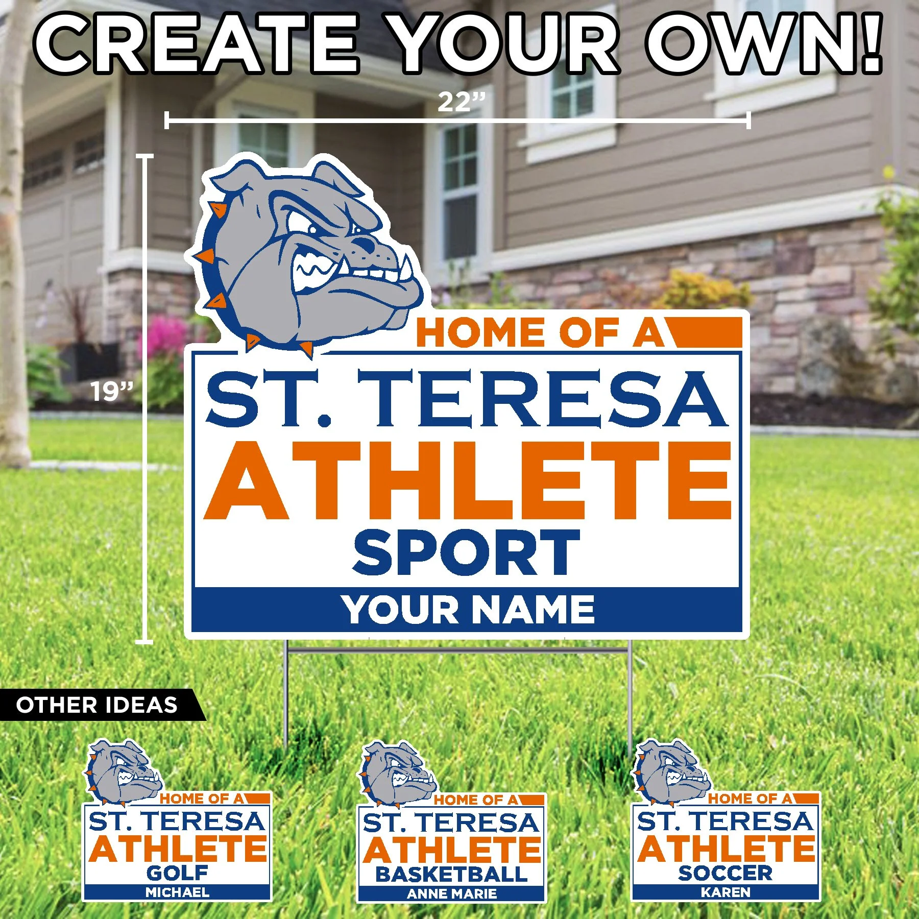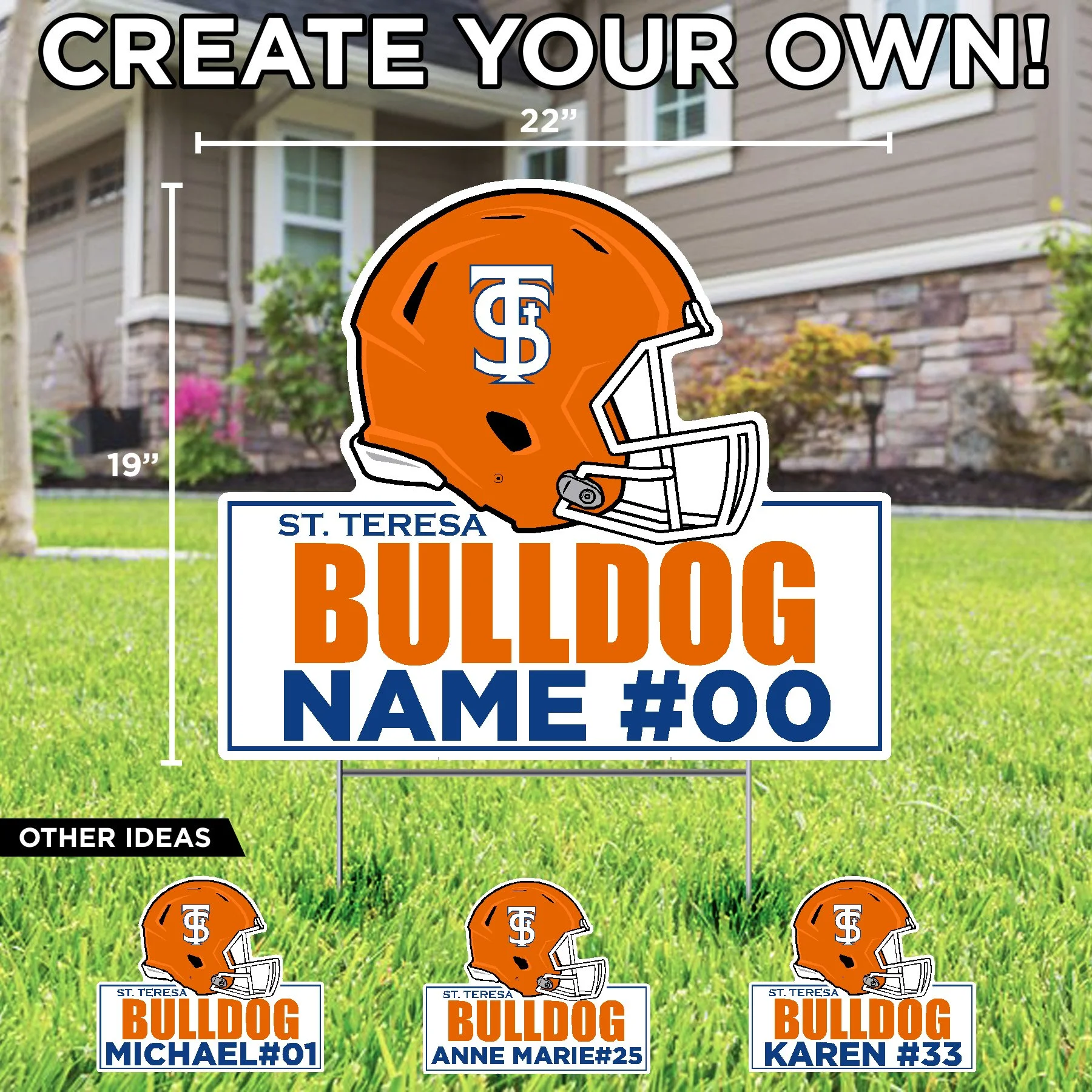 St. Teresa High School St. Teresa Bulldogs Soccer Sign $25.50 St. Teresa Bulldogs Volleyball Lawn Sign $25.50 St. Teresa Bulldogs Tennis Lawn Sign $25.50 St. Teresa Bulldogs Golf Lawn Sign $25.50 St. Teresa Poms (your text) Lawn Sign $26.50 St. Teresa Cheer (your text) Lawn Sign $26.50 Lets Go Bulldog Lawn Display $62.00 St. Teresa High School Shield 2026 Grad Lawn Display $73.66 Congrats (name) Class of 2026 St. Teresa High School (add your pic) Lawn Sign $26.50 Congrats Grad (name) St. Teresa H.S. Lawn Sign $26.50 Home of a St. Teresa Athlete (sport) (your name) Lawn Sign $26.50 Home of a St. Teresa 2026 Senior (name) Lawn Sign $26.50 Football Helmet St. Teresa Bulldog (name number) Lawn Sign $26.50 St. Teresa High School Bulldog Lawn Sign $25.50 Congratulations (your name) St. Teresa High School Lawn Sign $26.50 Congratulations Graduate St. Teresa High School Lawn Sign $26.50 Congratulations (your name) College Bound St. Teresa High School Lawn Sign $26.50 Congrats Grad College Bound St. Teresa High School Lawn Sign $25.50 Home of a St. Teresa Bulldog Lawn Sign $25.50 Home of a St. Teresa 2026 Senior Lawn Sign $25.50 St. Teresa High School Shield Lawn Sign $25.50 St. Teresa High School Football Helmet Lawn Sign $25.50