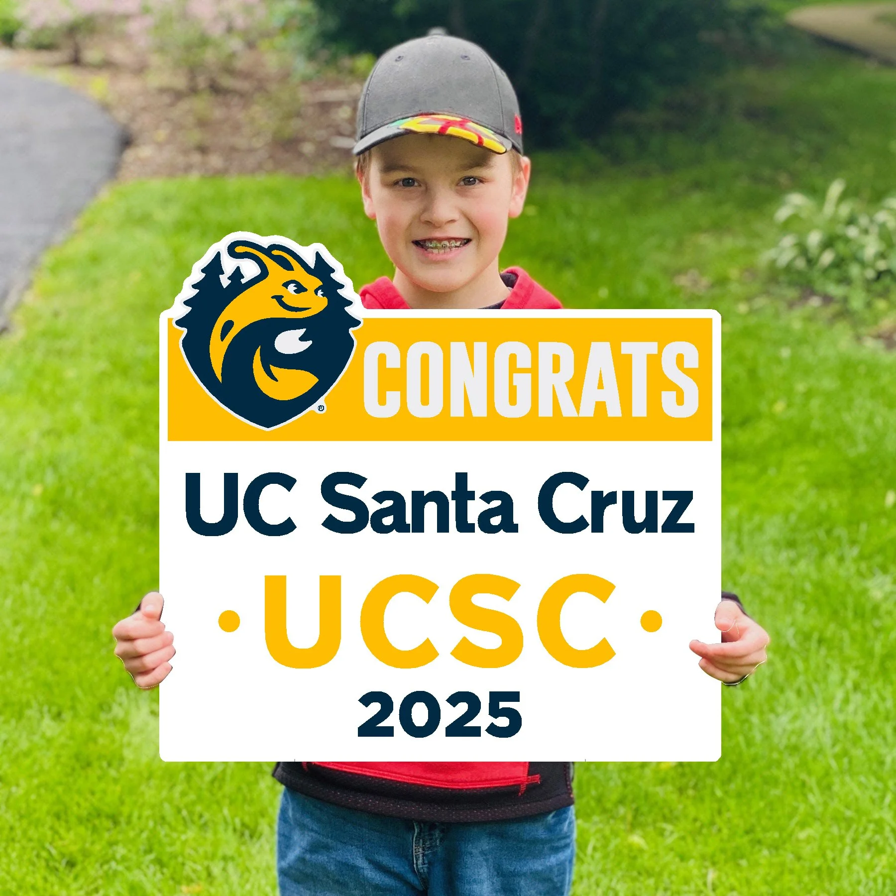 Bay Tree Campus Store UCSC University Of California Santa Cruz Graduate Lawn Sign $29.99 Home Of A Future Banana Slug University Of California Santa Cruz Lawn Sign $29.99 Home Of A UC Santa Cruz Student University Of California Santa Cruz Lawn Sign $29.99 University Of California Santa Cruz Seal Lawn Sign $29.99 University Of California Santa Cruz Mascot Lawn Sign $29.99 Congratulations UC Bound University Of California Santa Cruz Lawn Sign $29.99 University Of California Santa Cruz Bound Lawn Sign $29.99